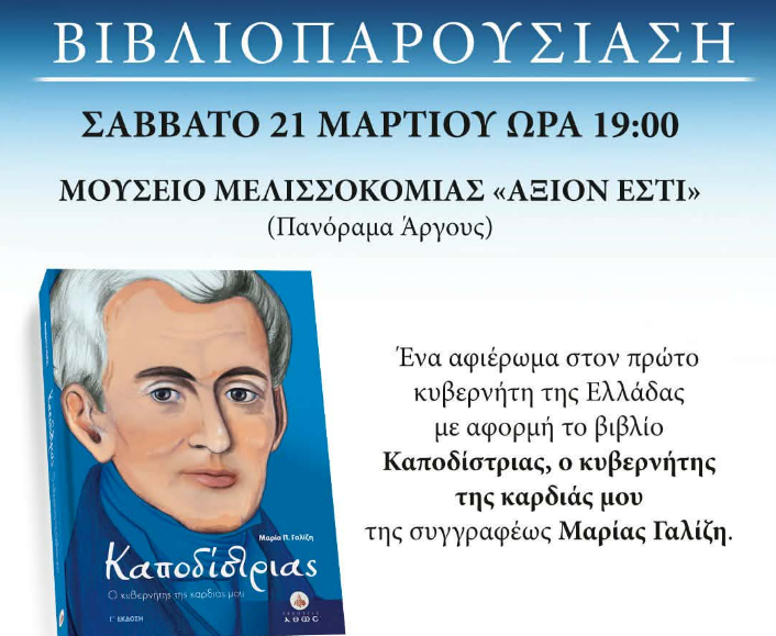 Ένα αφιέρωμα στον πρώτο κυβερνήτη της Ελλάδας με αφορμή το βιβλίο “Καποδίστριας, ο κυβερνήτης της καρδιάς μου”, της συγγραφέως Μαρίας Γαλίζη.