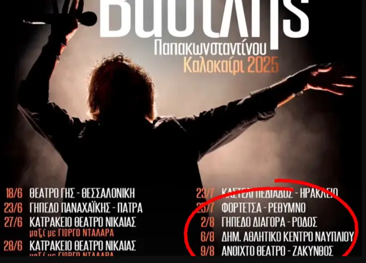 Αναγνώστης της εφημερίδας μόλις έμαθε για τη συναυλία του Βασίλη Παπακωνσταντίνου στο Ναύπλιο και ειδικότερα στο ΔΑΚ Ναυπλίου, μας έγραψε τα ακόλουθα : « Η δημοτική αρχή αφού πρώτα αποφάσισε να μη δώσει κανένα δημοτικό χώρο σε συλλόγους του Δήμου να κάνουν εκδηλώσεις και τους κρέμασε στα μανταλάκια με ανακοινώσεις και μηνύσεις καθώς και με τα όσα ειπώθηκαν στο δημοτικό συμβούλιο, βλέπουμε τώρα να δίνει το ΔΑΚ ΝΑΥΠΛΙΟΥ, για άλλη μια φορά σε εταιρεία από την Αθήνα χωρίς καν να υπάρχει απόφαση δημοτικού συμβουλίου. Ο Βασίλης Παπακωνσταντίνου ανακοίνωσε την καλοκαιρινή περιοδεία του και έχει συμπεριλάβει μέσα και το Ναύπλιο (ΔΑΚ Ναυπλίου) χωρίς να υπάρχει καμία απόφαση δημοτικού συμβουλίου. Ίσως είναι ο μοναδικός Δήμος στην Ελλάδα που λειτουργεί έτσι. Καλά, τον κύριο δήμαρχο και την αυλή του ξέρουμε πλέον πως λειτουργούν. Αλλά ο αντιδήμαρχος αθλητισμού τι έχει να πει; Νομίζαμε ότι ξεχώριζε….