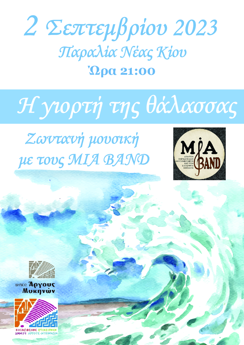 Η Γιορτή της Θάλασσας θα γίνει στις 2 Σεπτεμβρίου 2023 και ώρα 9μμ στην παραλία της Νέας Κίου. Τμήματα παραδοσιακών χορευτικών συλλόγων θα παρουσιάσουν χορούς νησιώτικους συνοδεία παραδοσιακής ορχήστρας. Από τη Mia Band θα ακούσουμε από την παραδοσιακή μουσική σκηνή έως την σύγχρονη έντεχνη. Τραγουδάει η Κρητούλα Λαρδά. Μαζί της οι: