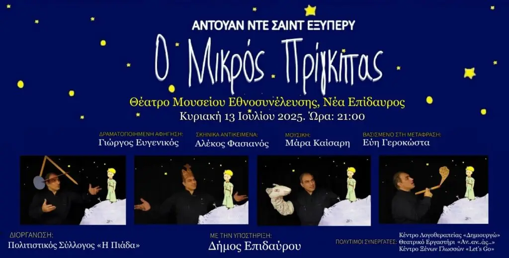 Ο Γιώργος Ευγενικός, ισορροπεί μοναδικά ανάμεσα στον αφηγηματικό λόγο και τη θεατρική δράση. Συνομιλεί με τους χαρακτήρες, ζωντανεύει τους διαλόγους και οδηγεί μικρούς και μεγάλους στο ταξίδι του Μικρού Πρίγκιπα.