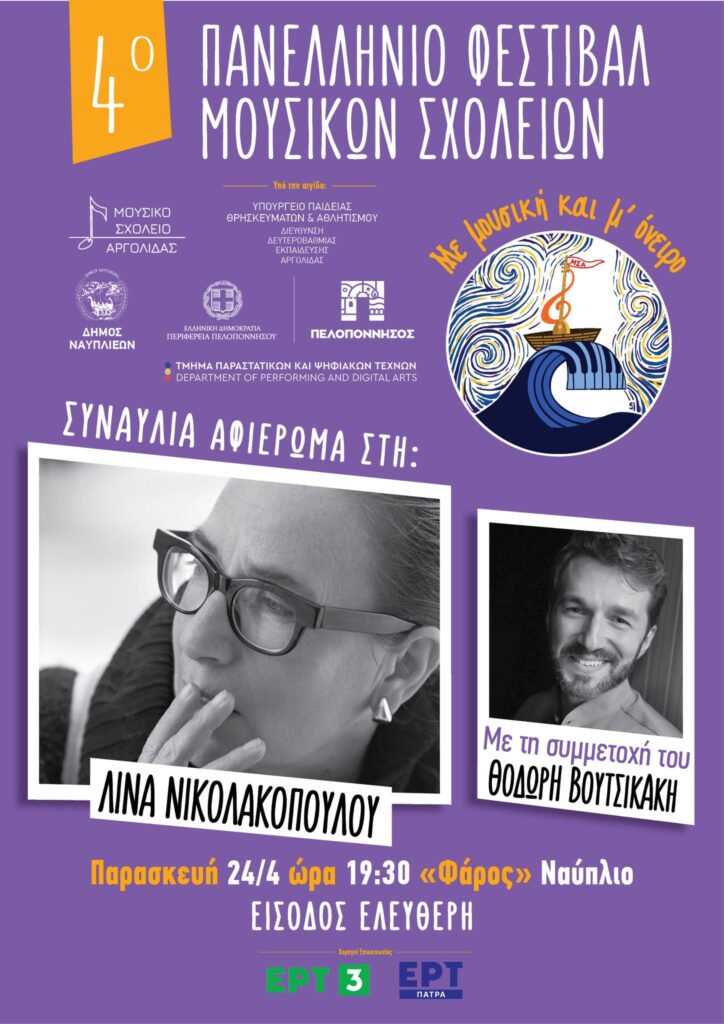 Κορυφαία στιγμή των εκδηλώσεων αποτελεί η κεντρική συναυλία, αφιέρωμα στη σπουδαία στιχουργό Λίνα Νικολακοπούλου, η οποία θα πραγματοποιηθεί την Παρασκευή 24 Απριλίου στις 19:30, στο Φάρο Ναυπλίου, με την παρουσία και συμμετοχή της ίδιας. Στη συναυλία θα συμμετάσχει επίσης ο διακεκριμένος ερμηνευτής Θοδωρής Βουτσικάκης, ενώ τα μουσικά σύνολα των σχολείων θα πλαισιώσουν την εκδήλωση, δημιουργώντας μια μοναδική μουσική εμπειρία.
