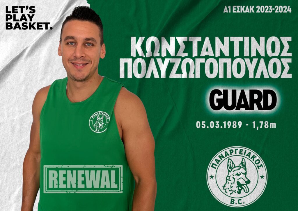 Η Διοίκηση του Παναργειακού B.C. ανακοινώνει την ανανέωση της συνεργασίας της με τον έμπειρο Κωνσταντίνο Πολυζωγόπουλο, ο οποίος και την ερχόμενη αγωνιστική περίοδο θα βρίσκεται στους «Λύκους».