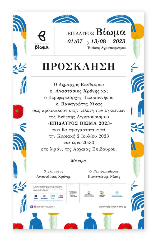 Με μια νέα ματιά, μια ολιστική και συμμετοχική προσέγγιση στην ανάδειξη της φυσικής και πολιτιστικής κληρονομιάς της περιοχής, εμπνευσμένη από την αρχαία λατρευτική παράδοση της υγείας και της ίασης, σηματοδοτείται το πέρασμα από την καθιερωμένη Έκθεση αγροτουρισμού Επιδαύρου στο «Επίδαυρος Βίωμα».
