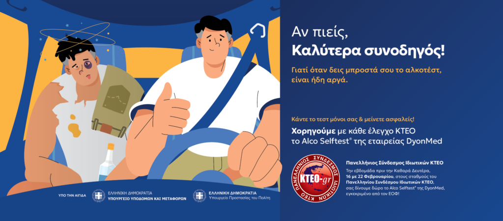 Ο Πανελλήνιος Σύνδεσμος Ιδιωτικών ΚΤΕΟ (Π.Σ.Ι.ΚΤΕΟ) ανακοινώνει την πανελλαδική δράση Εταιρικής Κοινωνικής Ευθύνης (ΕΚΕ) «Αν πιείς, καλύτερα συνοδηγός.», με στόχο την πρόληψη και την ενίσχυση της οδικής ασφάλειας. Είναι γεγονός ότι σε περιόδους αυξημένης κοινωνικής δραστηριότητας και εορτών, όπως οι Απόκριες, εφαρμόζονται κάθε χρόνο ενισχυμένα προληπτικά μέτρα της Τροχαίας, καθώς η οδήγηση υπό την επήρεια αλκοόλ αποτελεί διαχρονικά έναν από τους σημαντικότερους παράγοντες κινδύνου στο οδικό δίκτυο της χώρας. Η δράση μας υλοποιείται υποστηρικτικά σε αυτό το πλαίσιο, την εβδομάδα πριν την Καθαρά Δευτέρα, 16–22 Φεβρουαρίου 2026, στα συμμετέχοντα Ιδιωτικά ΚΤΕΟ-μέλη του Π.Σ.Ι.ΚΤΕΟ και περιλαμβάνει δωρεάν διάθεση Alco-Selftest (αλκοτέστ αυτοελέγχου) σε οδηγούς που προσέρχονται για τεχνικό έλεγχο, συνοδευόμενη από έντυπο ενημερωτικό υλικό και ψηφιακή καμπάνια.