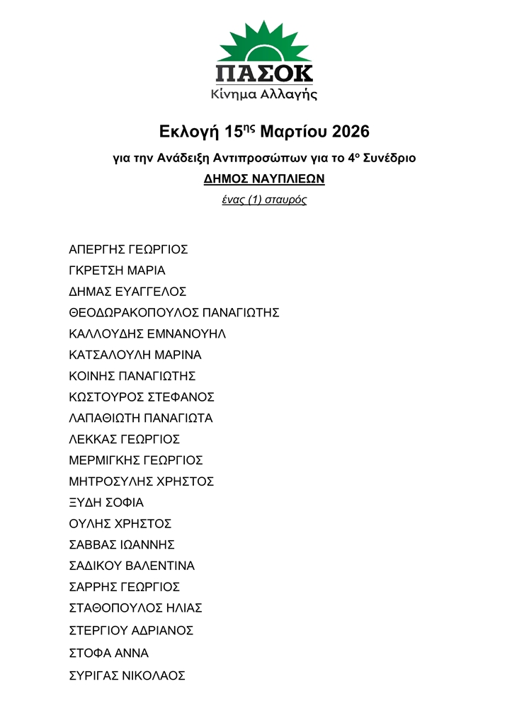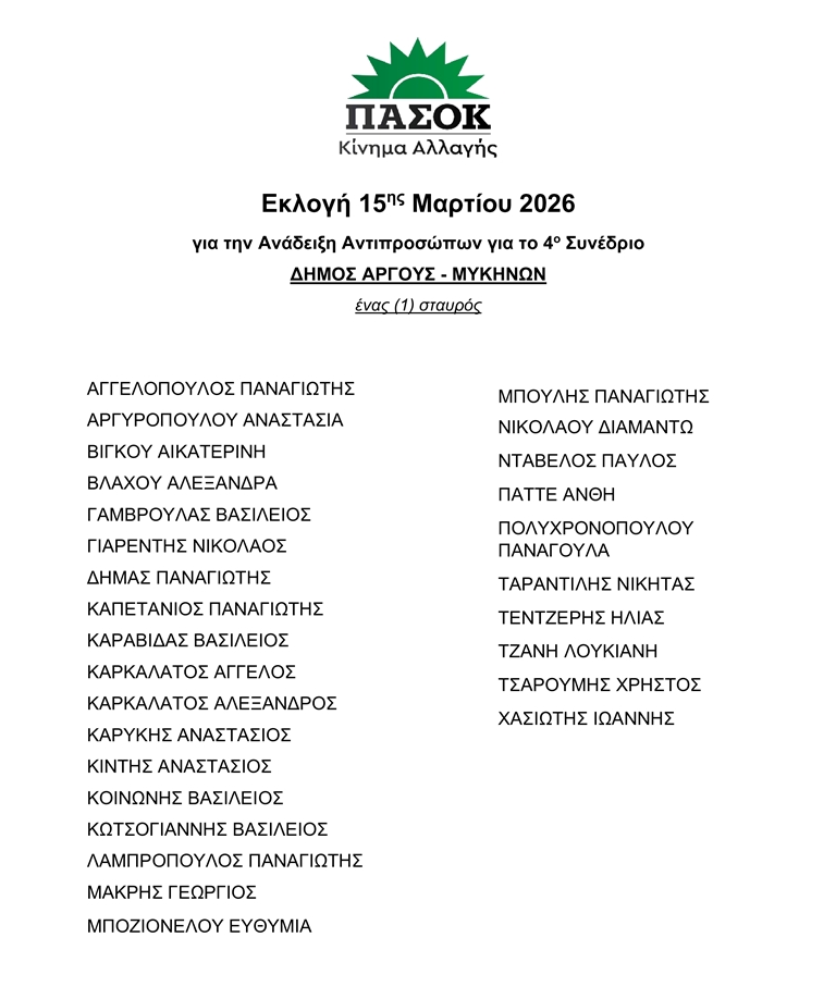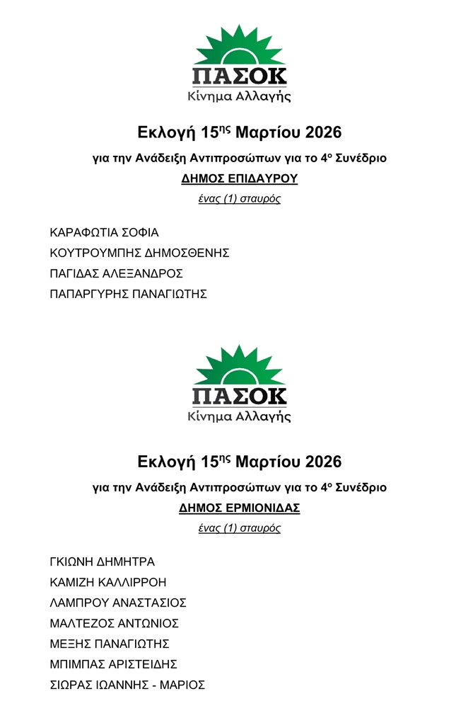 Καλούμε όλα τα μέλη, αλλά και τους φίλους της Δημοκρατικής Παράταξης στην Αργολίδα να συμμετάσχουν στην εκλογική διαδικασία. Η ενεργή συμμετοχή των πολιτών είναι η δύναμη που κρατά ζωντανό το ΠΑΣΟΚ και ενισχύει την κοινή μας προσπάθεια για την πολιτική αλλαγή που έχει ανάγκη η χώρα.