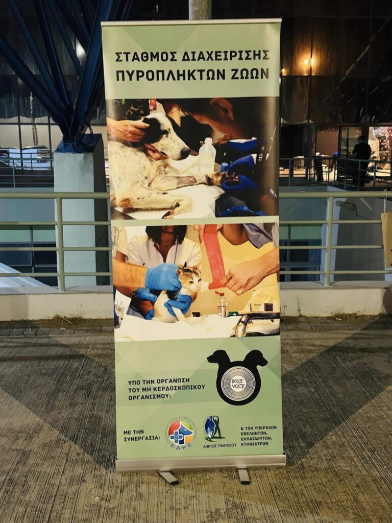 Ευχαριστούμε θερμά την Ειδική Γραμματεία Προστασίας Ζώων Συντροφιάς, το Dog’s Voice και τους συναδέλφους του Δήμου Διονύσου που παρά την δύσκολη νύχτα και την κόπωση τους μας υποδέχτηκαν”.