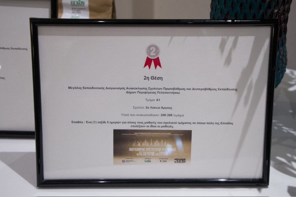 Βραβεύτηκε το Α1 τμήμα του 2ου Λυκείου Άργους στο Μεγάλο Εκπαιδευτικό Διαγωνισμό Ανακύκλωσης