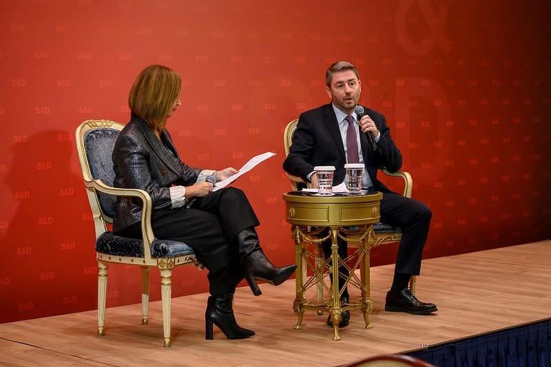 Στη συνέχεια ο Γ. Μανιάτης είχε μία αναλυτική συζήτηση με τη δημοσιογράφο Νίκη Λυμπεράκη, όπου είχε την ευκαιρία να αναλύσει τα κίνητρα για τη διοργάνωση της εκδήλωσης. Όπως σημείωσε χαρακτηριστικά, η Ευρωπαϊκή άμυνα είναι πλέον στο επίκεντρο, όμως δεν έχουν όλες οι πολιτικές ομάδες την ίδια προσέγγιση, υπογραμμίζοντας το ζήτημα της χρηματοδότησης, που για τους Σοσιαλιστές και Δημοκράτες είναι κόκκινη γραμμή η μείωση κονδυλίων για τη συνοχή και την Κοινή Αγροτική Πολιτική. Παράλληλα, ανέλυσε το θετικό ρόλο του Ευρωπαϊκού Κοινοβουλίου, όπως φάνηκε από τα πολύ πιο αυστηρά κριτήρια επιλεξιμότητας που αποφασίστηκαν για το Ευρωπαϊκό Πρόγραμμα Αμυντικής Βιομηχανίας (EDIP) στο οποίο ήταν ο εισηγητής για τους Σοσιαλιστές, ιδιαίτερα σε σχέση με το SAFE, προστατεύοντας τα εθνικά συμφέροντα και διασφαλίζοντας ότι τα ευρωπαϊκά χρήματα θα κατευθυνθούν μόνο σε εξοπλισμούς με ευρωπαϊκή τεχνολογία και έλεγχο. Δεν παρέλειψε επίσης να επικρίνει και την απουσία ολοκληρωμένης εθνικής στρατηγικής για την ενίσχυση της Ελληνικής Αμυντικής Βιομηχανίας, αλλά και διαλόγου για το πώς θα μπορέσουμε να εκμεταλλευθούμε, ιδιαίτερα οι Μικρομεσαίες επιχειρήσεις της χώρας, τις ευρωπαϊκές ευκαιρίες που παρουσιάζονται και θα πολλαπλασιαστούν τα επόμενα χρόνια.