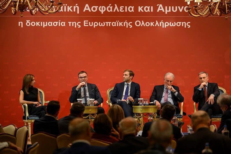 Στην ημερίδα συμμετείχε ο Πρόεδρος του ΠΑΣΟΚ Νίκος Ανδρουλάκης όπου είχε μία πολύ ενδιαφέρουσα συζήτηση με τη δημοσιογράφο Δήμητρα Κρουστάλλη. Ο Πρόεδρος του ΠΑΣΟΚ σημείωσε πως η Ευρώπη δεν μπορεί να είναι απλώς ένα κοινό νόμισμα, αλλά πρέπει να προχωρήσει και σε κοινές πολιτικές που θα διασφαλίζουν την ασφάλεια όλων των ευρωπαϊκών κρατών. Τόνισε επίσης την ανάγκη ο Ρωσικός και ο Τουρκικός αναθεωρητισμός να αντιμετωπίζονται με την ίδια αποφασιστικότητα από την Ευρώπη καθώς αποτελούν εκφάνσεις του ίδιου νομίσματος. «Η Διακήρυξη των Αθηνών ήταν το χαλί για να φτάσει ο Ερντογάν στις Βρυξέλλες και να διεκδικεί η Τουρκία πλήρη συμμετοχή στην Ευρωπαϊκή Αρχιτεκτονική Άμυνας» σημείωσε και επανέλαβε τη διαφωνία του για τη σύνδεση εκ μέρους της κυβέρνησης της άρσης του casus belli με τη συμμετοχής της Τουρκίας στο πρόγραμμα SAFE, καθώς η απειλή πολέμου μπορεί να επανέλθει, ενώ η είσοδος της γείτονος στο πρόγραμμα θα είναι κάτι μόνιμο, με επικίνδυνες επιπτώσεις.