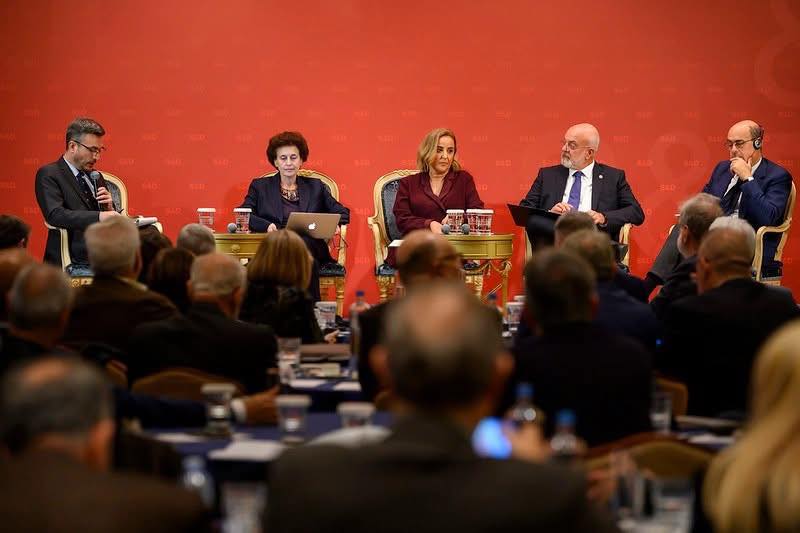 Στη συζήτηση μεταξύ του δημοσιογράφου Μάκη Προβατά και του Προέδρου του ΣΕΒ Σπύρου Θεοδωρόπουλου όπου τόνισε ότι στο σημερινό περιβάλλον με τις αυξημένες ανάγκες άμυνας στην Ευρώπη, η βιομηχανία καλείται να παίξει έναν ιδιαίτερα σημαντικό ρόλο. Όπως σημείωσε, η Ελληνική Αμυντική Βιομηχανία περιλαμβάνει πάνω από 130 επιχειρήσεις, απασχολεί περισσότερους από 14.000 εργαζομένους και διαθέτει κύκλο εργασιών άνω του €1,5 δισ. Υπογράμμισε ότι οφείλουμε να αξιοποιήσουμε στον μέγιστο βαθμό τις παραγωγικές μας δυνατότητες, τόσο για να διασφαλίσουμε το μερίδιο που μας αναλογεί, όσο και για να μειώσουμε κρίσιμες εξαρτήσεις, επισημαίνοντας ότι Κράτος και επιχειρήσεις πρέπει να αναλάβουν πρωτοβουλίες προκειμένου να κινηθούν στο διεθνές περιβάλλον, να δημιουργήσουν διασυνδέσεις με άλλες επιχειρήσεις, να έχουν συμμετοχή στην ανάπτυξη και την τεχνολογία, αλλά και να μπορούν να αποκομίσουν αντισταθμιστικά οφέλη. Τόνισε επίσης την ανάγκη η Ευρώπη να εξασφαλίσει τους απαιτούμενους πόρους για τη στήριξη της βιομηχανίας και της Άμυνας, διατηρώντας ταυτόχρονα την κοινωνική συνοχή ως προτεραιότητα, «μια δύσκολη συζήτηση που αφορά και στον επόμενο προϋπολογισμό της Ευρώπης 2028-2034 και η οποία θα κορυφωθεί κατά τη διάρκεια της ελληνικής Προεδρίας το δεύτερο εξάμηνο του 2027».