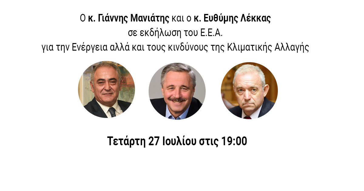 Γ. Μανιάτης και Ευθ. Λέκκας σε εκδήλωση του Ε.Ε.Α. για την Ενέργεια και την Κλιματική Αλλαγή (live streaming)