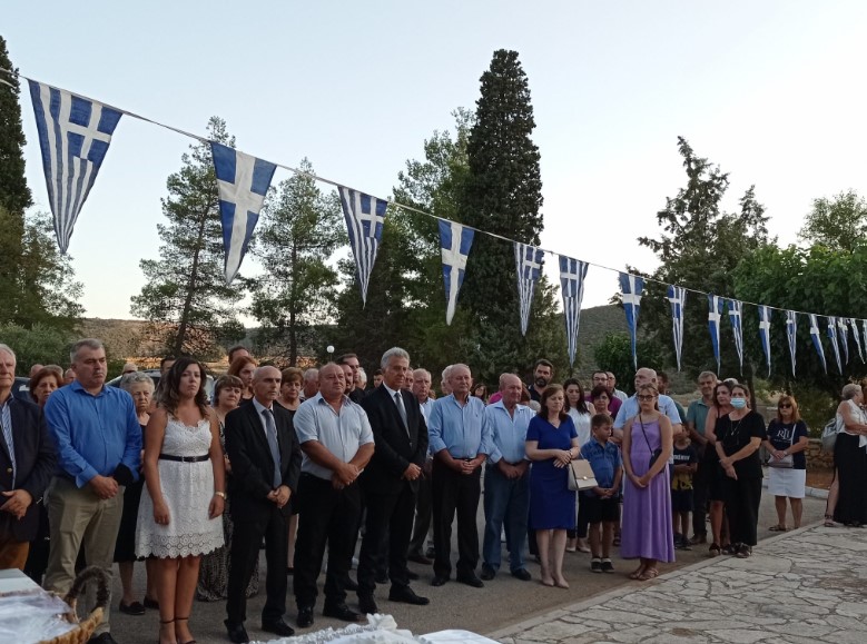 Στη συνέχεια κατατέθηκαν στεφάνια στην προτομή του Ήρωα, η οποία βρίσκεται στον προαύλιο χώρο της εκκλησίας δίπλα από το Ηρώο των φονευθέντων συντοπιτών του σε όλους του πολέμους της Ελλάδας.