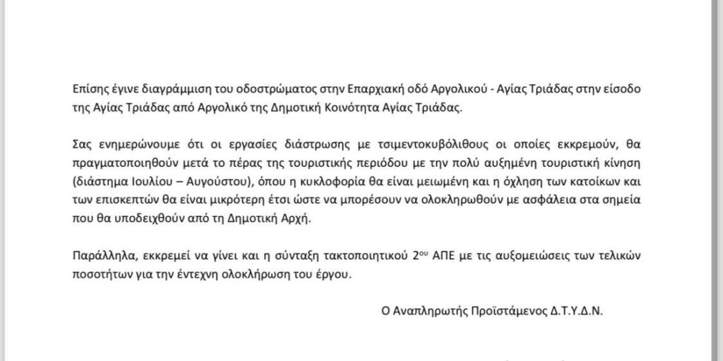 Η βιασύνη, επίσης, χωρίς έγκαιρη ενημέρωση, και οι εργασίες που πραγματοποιήθηκαν βραδινές ώρες σε κεντρικά σημεία, εν μέσω τουριστικής περιόδου, δεν δείχνουν προγραμματισμό, αλλά μόνο ανάγκη δημιουργίας εντυπώσεων.