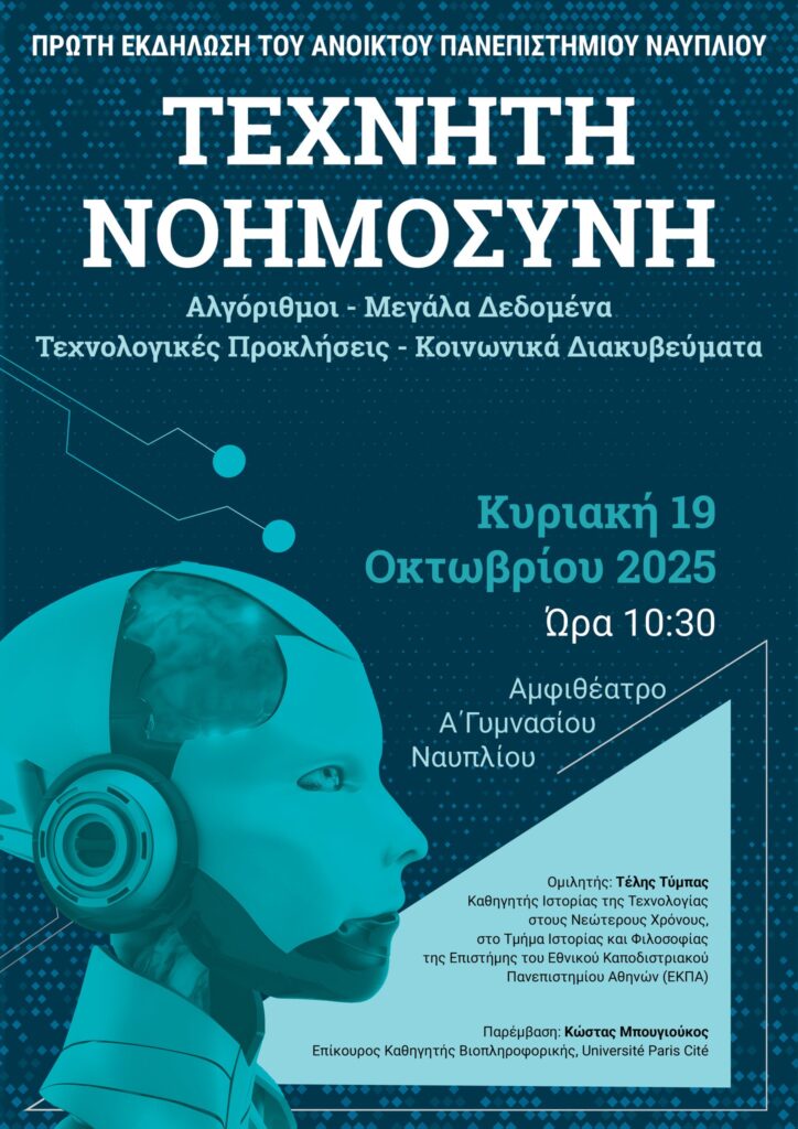 Η αφίσα για την εκδήλωση του Ανοικτού Πανεπιστημίου στο 1ο Γυμνάσιο Ναυπλίου