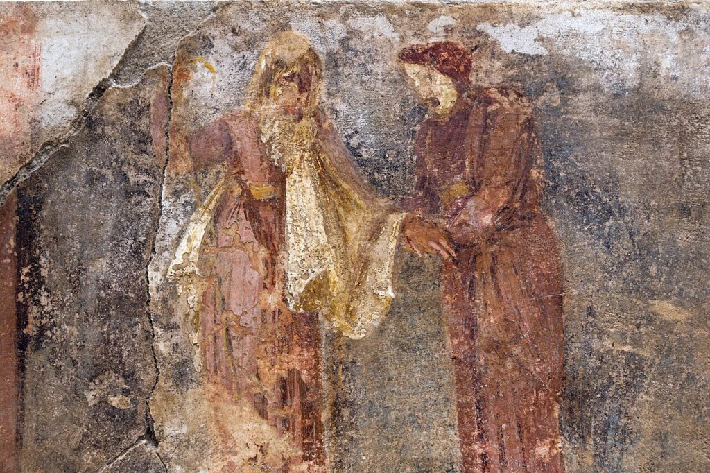 Εικ.4 Η Αντιγόνη οδηγεί τον τυφλό Οιδίποδα μακριά σε τοιχογραφία από τη Δήλο, 1ος αιώνας π.Χ. Πηγή: el.wikipedia.org/wiki/Antigone_(Sophocles_play)