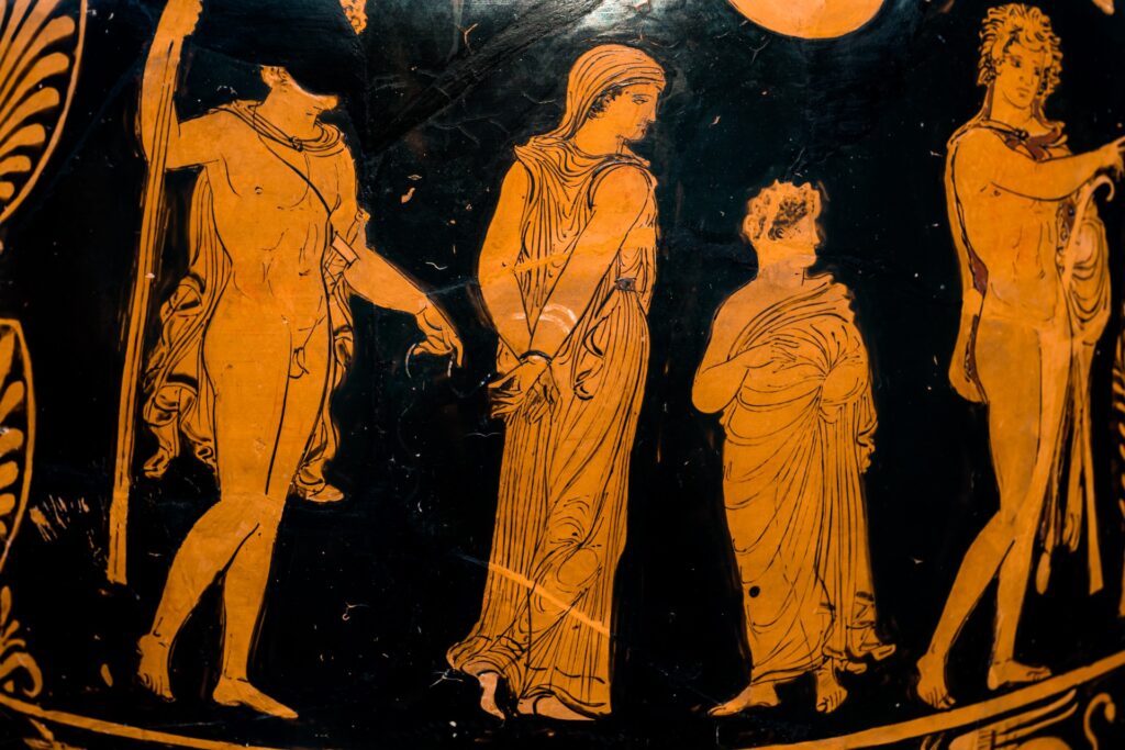 Εικ.5 Η Η Αντιγόνη δεμένη σε έναν ερυθρόμορφο αμφορέα της Απουλίας, του Darius Painter, περ. 350-320 π.Χ., Altes Museum. Πηγή: el.wikipedia.org/wiki/Antigone_(Sophocles_play)