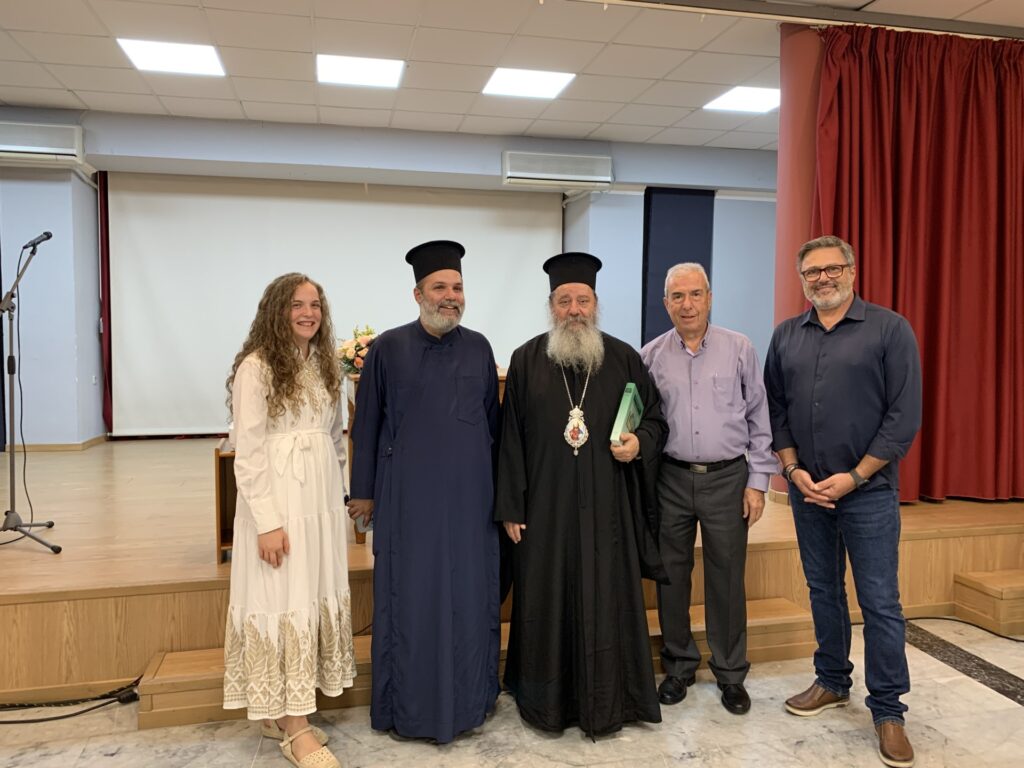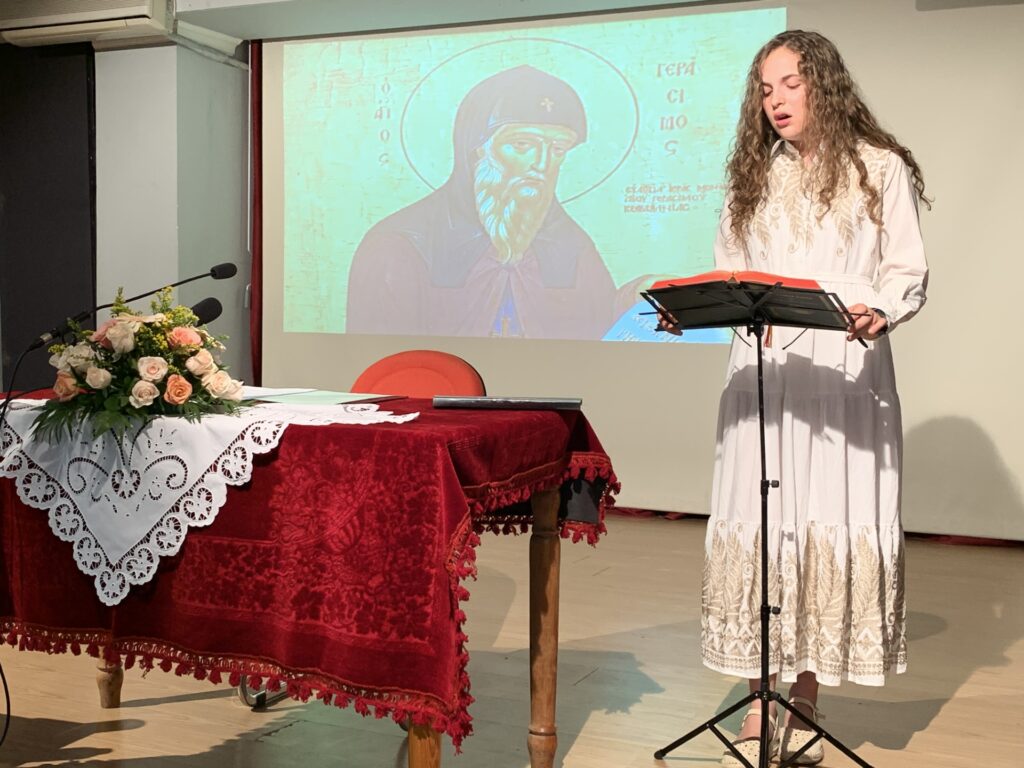 Πριν την ομιλία του Επισκόπου, προβλήθηκαν εικόνες για τον Άγιο Γεράσιμο και ακούστηκαν τροπάρια του Αγίου από την εξαιρετική φωνή της Νεφέλης Σούρσου.