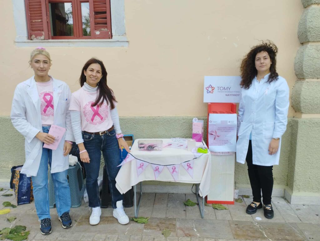 Στο πλαίσιο του εορτασμού της Παγκόσμιας Ημέρας κατά του Καρκίνου του Μαστού, η ΤΟΜΥ Ναυπλίου, σε συνεργασία με το Κέντρο Υγείας Ναυπλίου πραγματοποίησε ενημερωτική δράση με στόχο την ενημέρωση, την πρόληψη και την ευαισθητοποίηση του κοινού σχετικά με τη σημασία της έγκαιρης διάγνωσης.