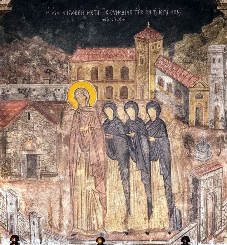 Φώτης Κόντογλου, «Ἡ Ἁγία Φιλοθέη μετὰ τῆς συνοδίας αὐτῆς ἐν τῇ ἱερᾷ μονῇ τοῦ Ἁγίου Ἀνδρέου».