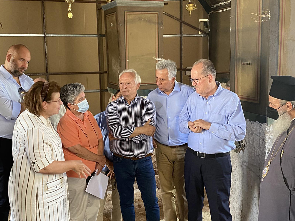 Ακολούθησε επίσκεψη και αυτοψία στον ναό Παμμεγίστων Ταξιαρχών στην Ερμιόνη -παρουσία και του μητροπολίτη Υδρας, Σπετσών και Αιγίνης Εφραίμ- το έργο ανακατασκευής του οποίου καθυστερεί για αρκετά χρόνια, δεδομένου ότι η εν λόγω εκκλησία -κτίσμα του 16ου αιώνα, που αποτελεί εμβληματικό μνημείο της περιοχής- έχει θεμελιωθεί πάνω από τον αρχαίο ναό της Δήμητρας.