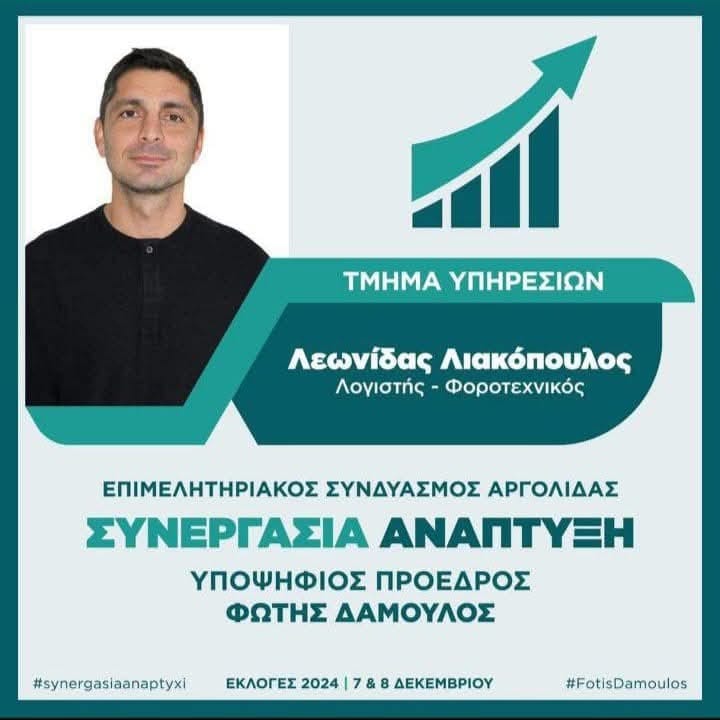 Επιμελητηριακές εκλογές: Ο Λεωνίδας Λιακόπουλος υποψήφιος με τη “Συνεργασία Ανάπτυξη” του Φώτη Δαμούλου
