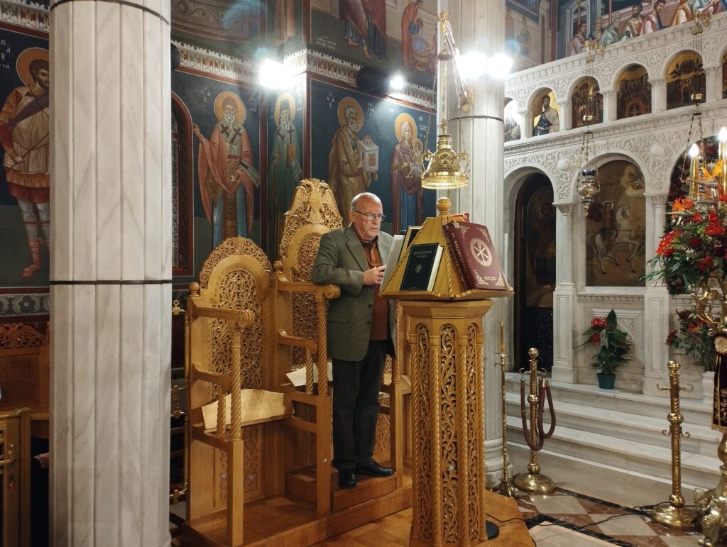 Τα παιδιά συνόδευαν η Διευθύντρια του σχολείου κα Ειρήνη Χρονοπούλου και ο καθηγητής Ελληνικής Παραδοσιακής Μουσικής, θεολόγος, συγγραφέας, π. Γεώργιος Αναγνωστόπουλος , ο οποίος έψαλε μαζί τους.
