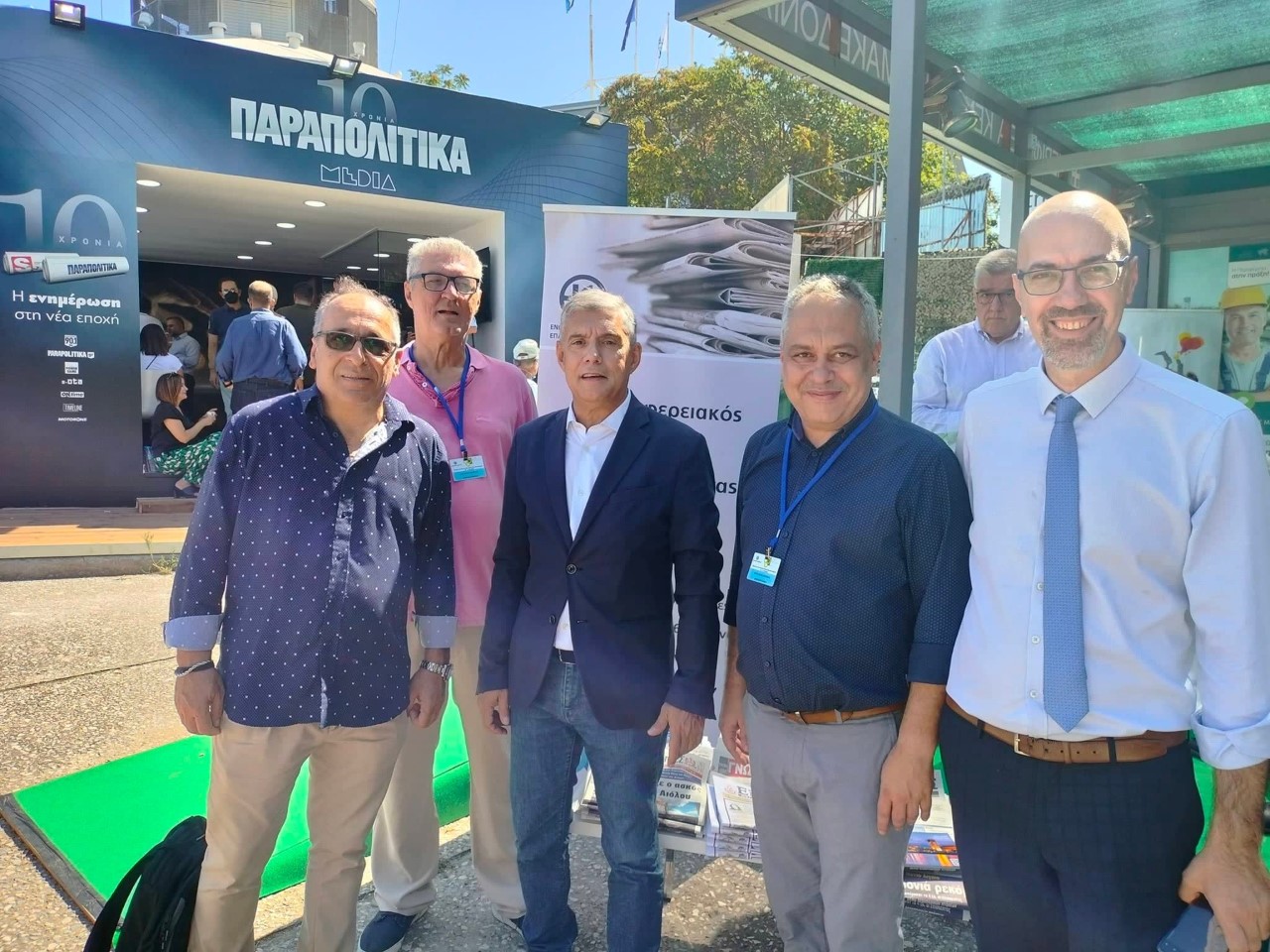 Παρόντες στη ΔΕΘ ο Πρόεδρος της ΕΙΕΤ Αντώνης Μουντάκης, ο Α’ Αντιπρόεδρος Σταύρος Μάτσης, ο Β’ Αντιπρόεδρος Διονύσης Τριανταφύλλου, ο Γενικός Γραμματέας Νίκος Σουρλόπουλος, ο Ταμίας Άγγελος Βασίλαινας και ο ειδικός Γραμματέας Γιώργος Αργυρίου.