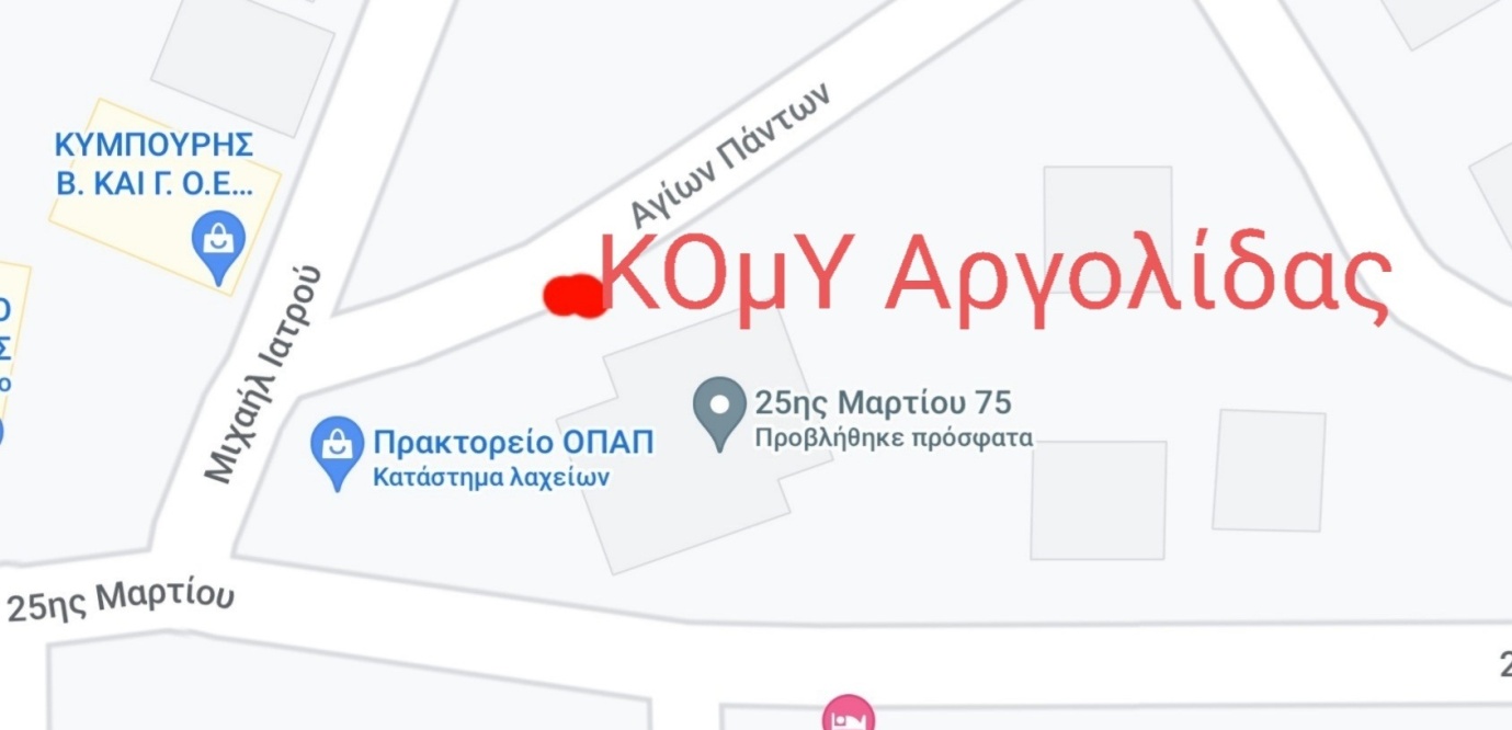 H ΚΟμΥ Αργολίδας θα βρίσκεται καθημερινά (Δευτέρα – Παρασκευή και ώρες 09:00-14:00 & Κυριακή 09:00 έως 15:00) στον ισόγειο χώρο του Κοινωνικού Ιατρείου του Δ.Ναυπλιέων. Η πρόσβαση γίνεται από την οδό Αγίων Πάντων όπως δείχνει το σχεδιάγραμμα: