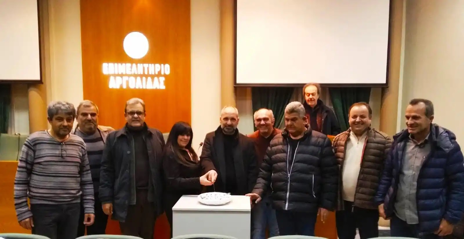Η κοπή της πίτας πραγματοποιήθηκε από τον Πρόεδρο κ. Θοδωρή Γαβρίλο παρουσία του Προέδρου του Επιμελητηρίου Αργολίδας κ. Φώτη Δαμούλο, του Οικονομικού Επόπτη κ. Μανώλη Δανούση, των εκπροσώπων Σωματείων και μελών του Δ.Σ: Γραμματέα κ. Παναγιώτη Δαμούλο, Α’ Αντιπρόεδρο κ. Λεωνίδα Κωσταλάμπρο, Β’ Αντιπρόεδρο κ. Γιώργο Πινάτση, Ταμία κ. Σταύρο Δελή, των Μελών κ. Γιώργου Σκουτέρη, κ. Δημήτρη Τούντα, κ. Γιώργου Καλαλά, κ. Κωνσταντίνα Δημητροπούλου, καθώς και μελών του Επιμελητηρίου Αργολίδας.