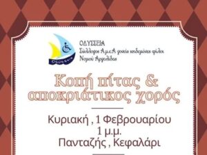 Την Κυριακή 1 Φεβρουαρίου ο Σύλλογος “Οδύσσεια” ΑμεΑ Νομού Αργολίδας έκοψε την πίτα του και υποδέχτηκε την Αποκριά στον Πανταζή στο Κεφαλάρι