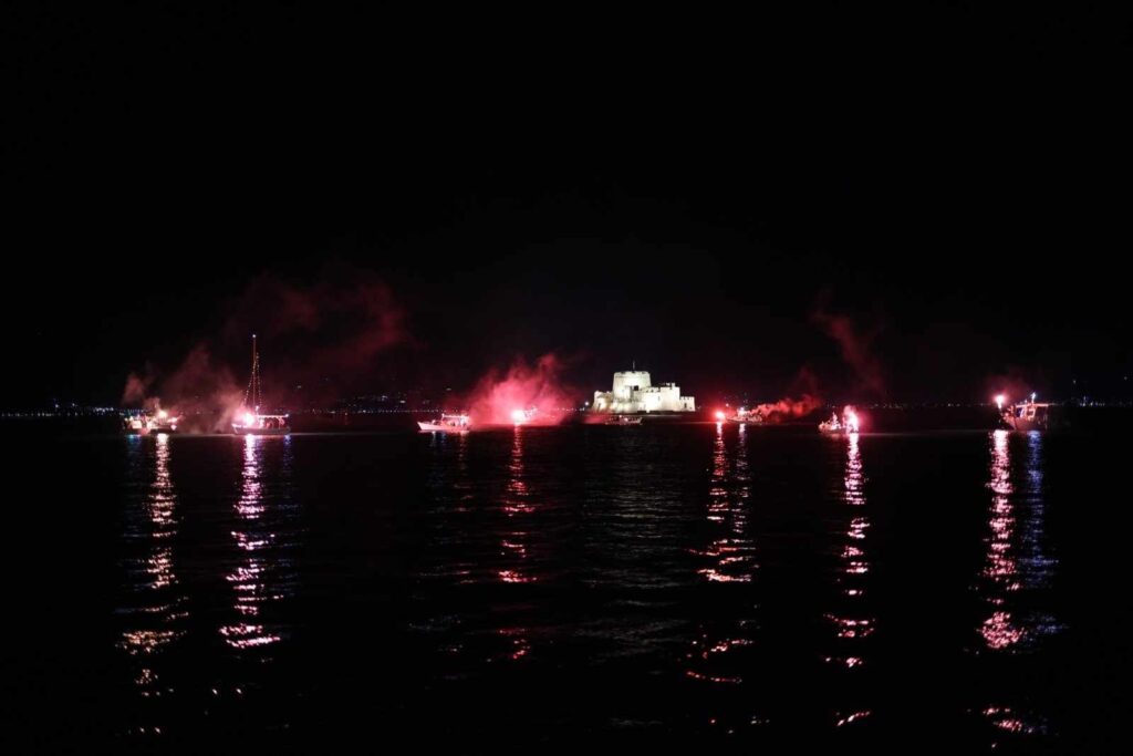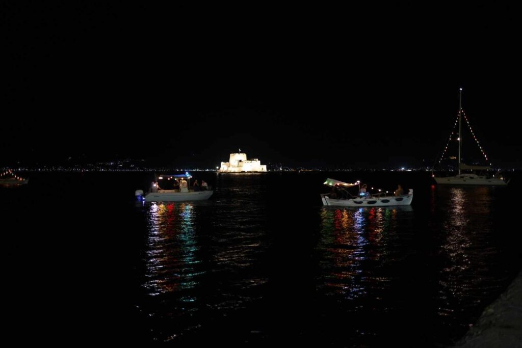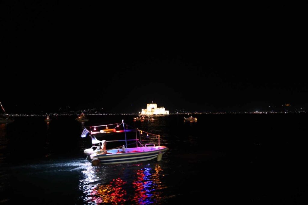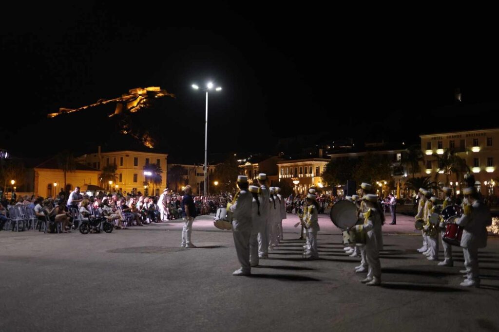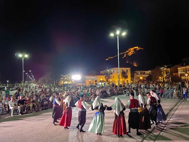 Η μαγευτική βραδιά έκλεισε με παραδοσιακούς χορούς από τη Χορευτική Ομάδα των Φίλων του Ιδρύματος “Βασίλης Παπαντωνίου”, στο λιμάνι του Ναυπλίου.