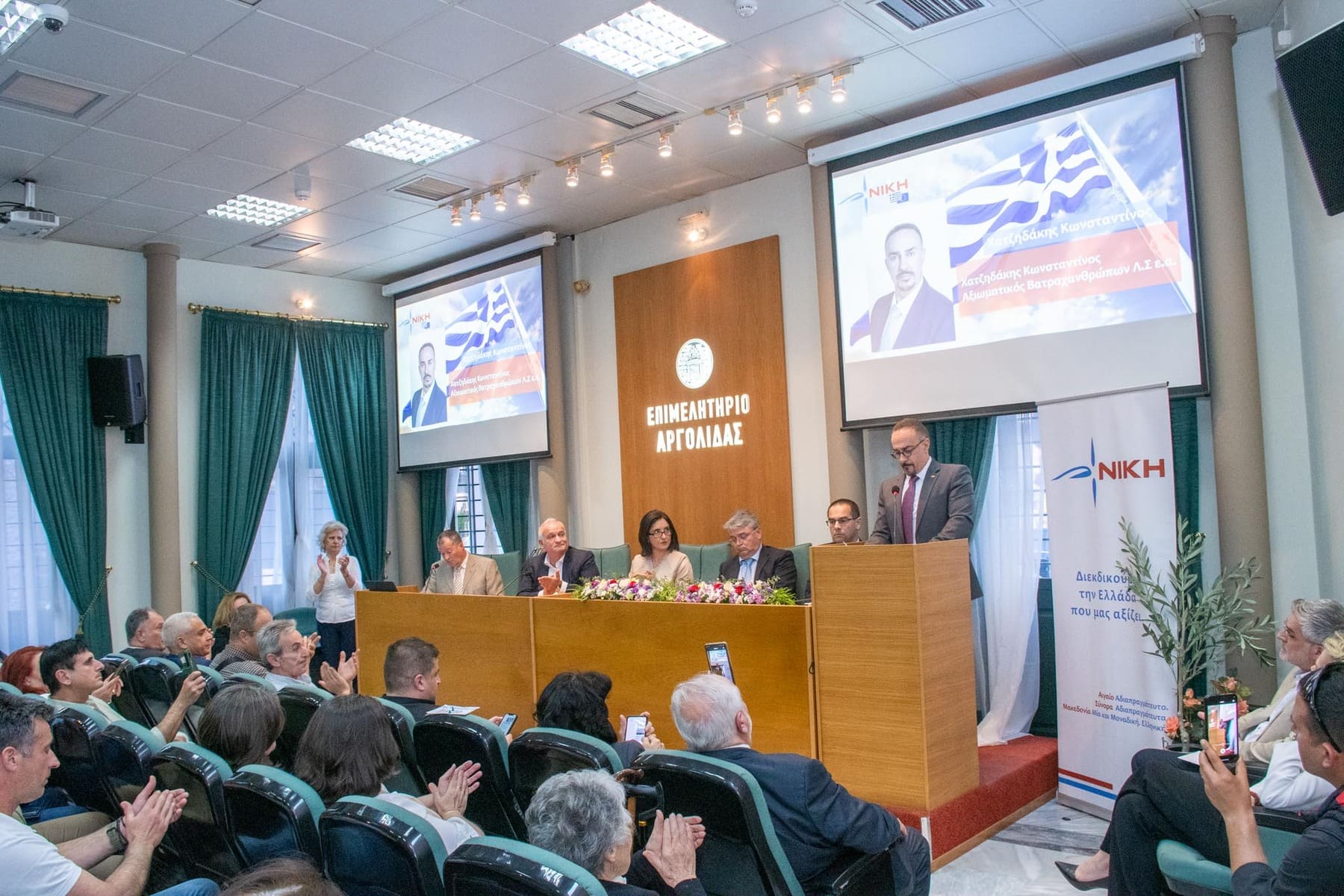Την Κυριακή, 19 Μαΐου 2024, στην αίθουσα εκδηλώσεων του Εμπορικού Επιμελητηρίου Άργους, εμφανίστηκαν ενώπιον της τοπικής κοινωνίας της Αργολίδας, οι ακόλουθοι επτά (7) υποψήφιοι Ευρωβουλευτές της ΝΙΚΗΣ, παρουσιάζοντας ο καθένας το ευρωπαϊκό όραμά του, με βάση το γνωστικό του υπόβαθρο: