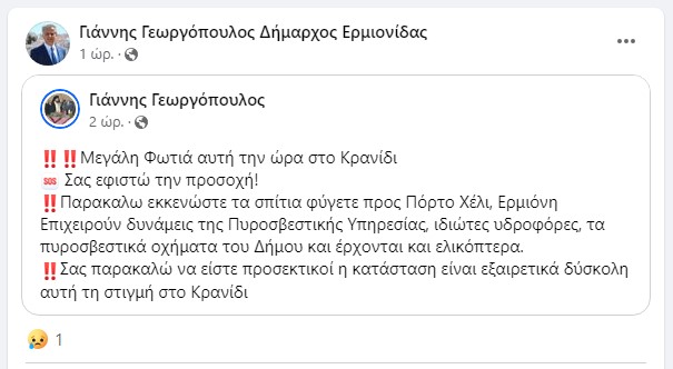 Έκκληση να εκκενώσουν την πόλη έκανε ο δήμαρχος Γιάννης Γεωργόπουλος με ανάρτησή του: