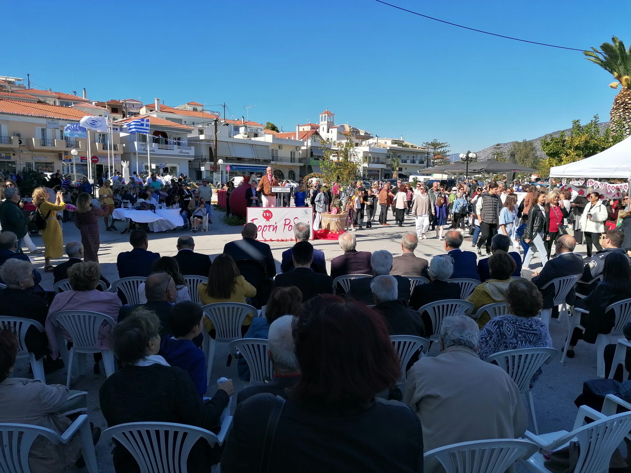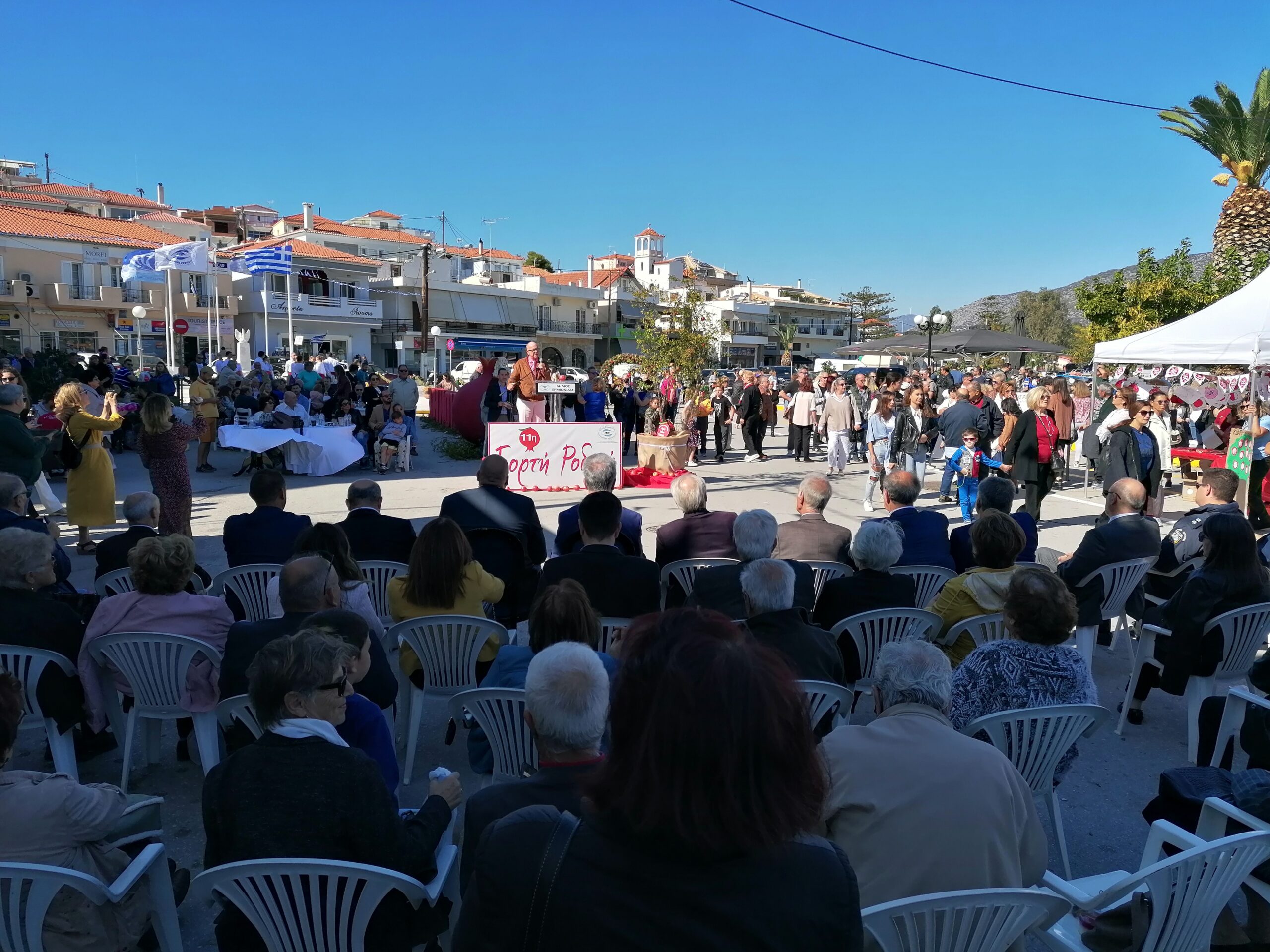 Με απόλυτη επιτυχία πραγματοποιήθηκε η 11η γιορτή του Ροδιού στην Ερμιόνη παρουσία του Δημάρχου Ερμιονίδας Γιάννη Γεωργόπουλου των Βουλευτών του Νομού αλλά και του Αντιπεριφερειάρχη Αργολίδας Δημήτρη Σχοινοχωρίτη αλλά και του θεματικού Αντιπεριφερειάρχη Γιάννη Μαντζούνη. Στην πλέον άρτια οργανωμένη εκδήλωση για το ρόδι της Ερμιόνης ήταν εντυπωσιακή η συμμετοχή του κόσμου που έδωσε τα παρόν κατά εκατοντάδες απολαμβάνοντας το τοπικό προιόν σε διάδορες εκφράσεις του όπως χυμός η φυσικό φρούτο . Ο Γιάννης Ανδριανός δήλωσε ότι είναι θέμα χρόνου οι εξελίξεις με τον Ανάβαλο .και ο εκπρόσωπος των παραγωγών Δημήτρης Κόντος σήμανε συναγερμό για τα προβλήματα που έχουν δημιουργηθεί με το νερό και οδηγούν στην εγκατάλειψη της παραγωγής Εντυπωσιακή ήταν η συμμετοχή της νεολαίας που είχε δημιουργήσει τα δικά της περίπτερα αλλά και των παραγωγών που βρήκαν την ευκαιρία να αναδείξουν το ρόδι