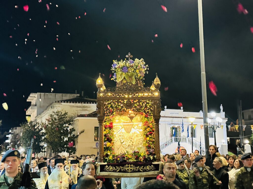 Αμέσως μετά τον Εσπερινό, πραγματοποιήθηκε η καθιερωμένη λιτανεία της Ιεράς Εικόνας και των Λειψάνων του Αγίου Πέτρου στους δρόμους της πόλης. Την πομπή συνόδευσαν άγημα του Στρατού Ξηράς, η Δημοτική Φιλαρμονική Λουτρακίου και η Φιλαρμονική του Άργους ‘’Ορφέας’’.