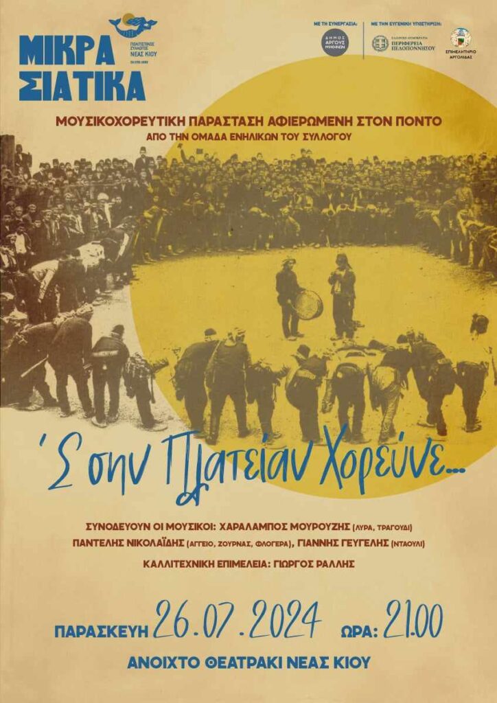 Ο Πολιτιστικός σύλλογος Νέας Κίου με μεγάλη χαρά σας προσκαλεί στην ετήσια μουσικοχορευτική του παράσταση αφιερωμένη στον Πόντο την Παρασκευή 26 Ιουλίου 2024 και ώρα: 21.00 στο ανοιχτό θεατράκι της Νέας Κίου.