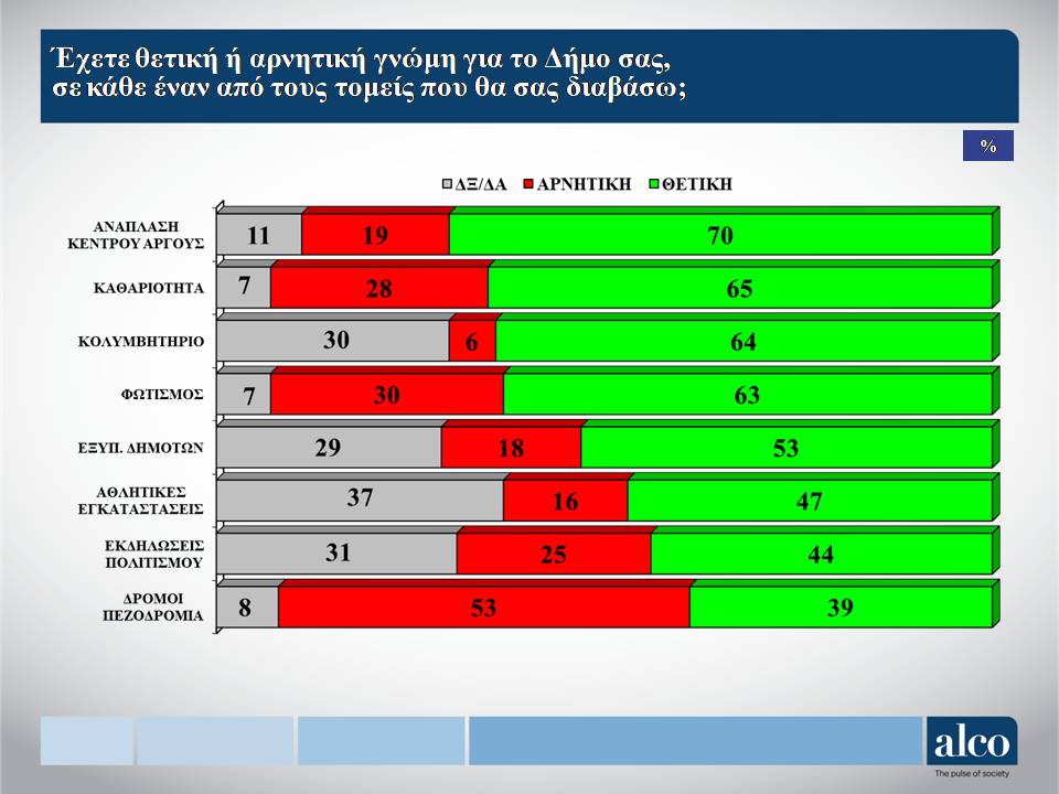 Αν έχετε θετική ή αρνητική γνώμη για τον δήμο σας σε κάθε έναν από τους τομείς που θα σας διαβάσω;