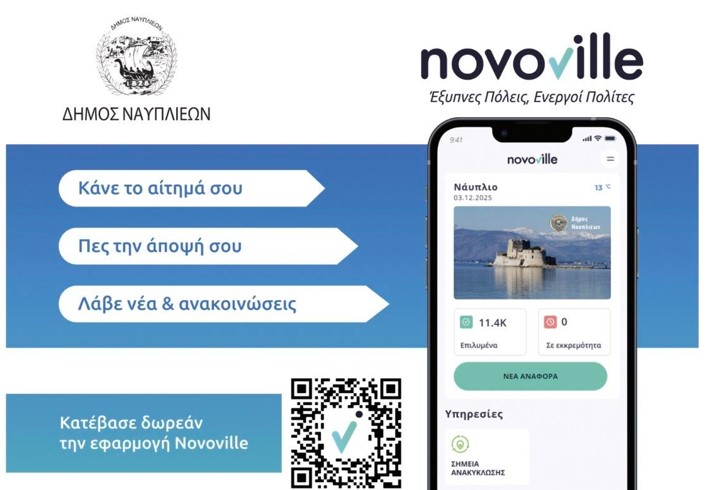 3. Τέλος, επεκτείνουμε τη λειτουργία της πλατφόρμας Novoville σε όλες τις υπηρεσίες του Δήμου, για ακόμη πιο άμεση εξυπηρέτηση και μια σύγχρονη, αποτελεσματική και διαδραστική σχέση με τους πολίτες μας.