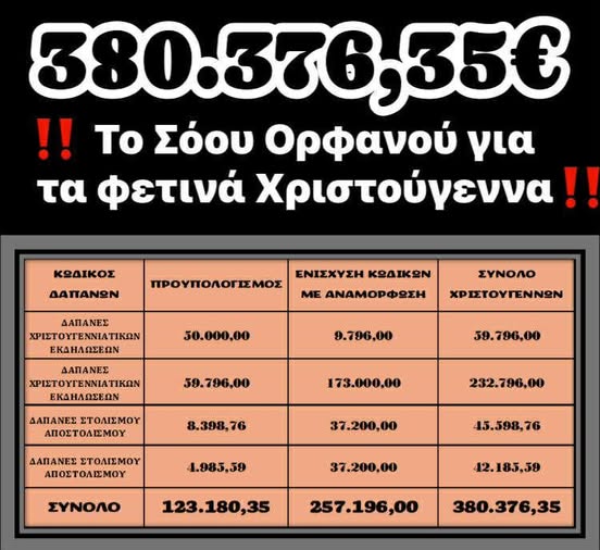 Ενδεικτικό του κλίματος και της νοοτροπίας που επικρατεί στη δημοτική αρχή Ορφανού είναι και η τοποθέτηση της Σοφίας Ξύδη που όταν ρωτήθηκε για το υπέρογκο ποσό που δεσμεύθηκε δήλωσε ότι δεν θα τα δαπανήσουν όλα αλλά μόνο τα 220.000!