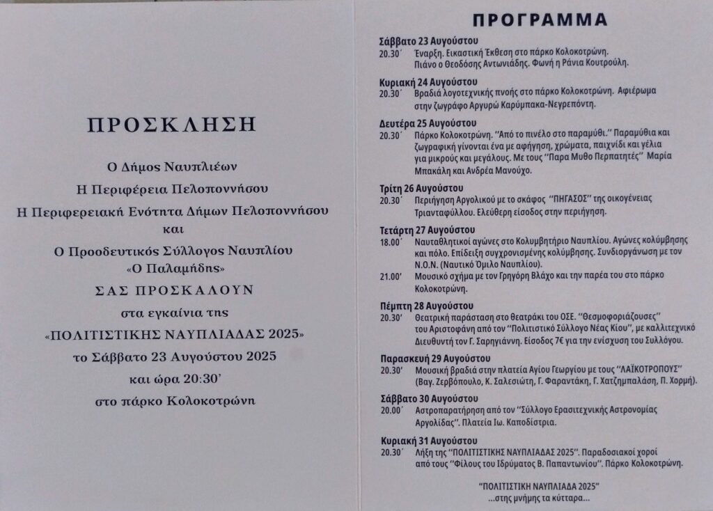 ΄΄ΠΟΛΙΤΙΣΤΙΚΗ ΝΑΥΠΛΙΑΔΑ 2025΄΄ τούτη την χρονιά…