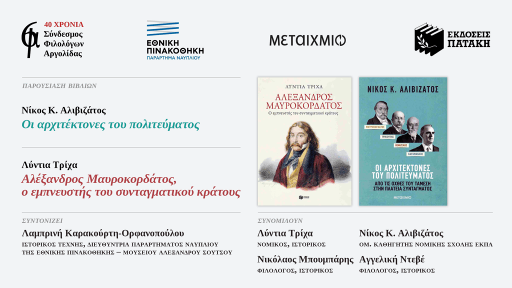 Ναύπλιο: Παρουσίαση των βιβλίων “Αλέξανδρος Μαυροκορδάτος” και “Οι αρχιτέκτονες του πολιτεύματος”
