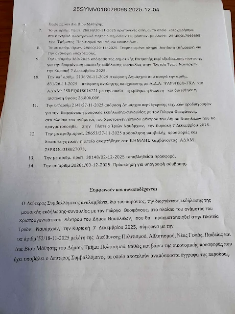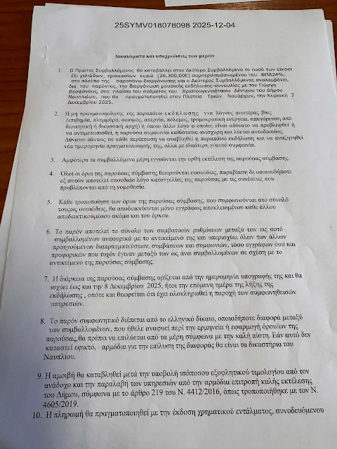 “Ο Δήμος Ναυπλιέων, σε συνέχεια της δημόσιας ανακοίνωσης του κ. Θεοφάνους, θεωρεί υποχρέωσή του να παραθέσει ορισμένες αναγκαίες διευκρινίσεις, με σεβασμό προς τον ίδιο και τους συνεργάτες του, αλλά και προς τους δημότες.