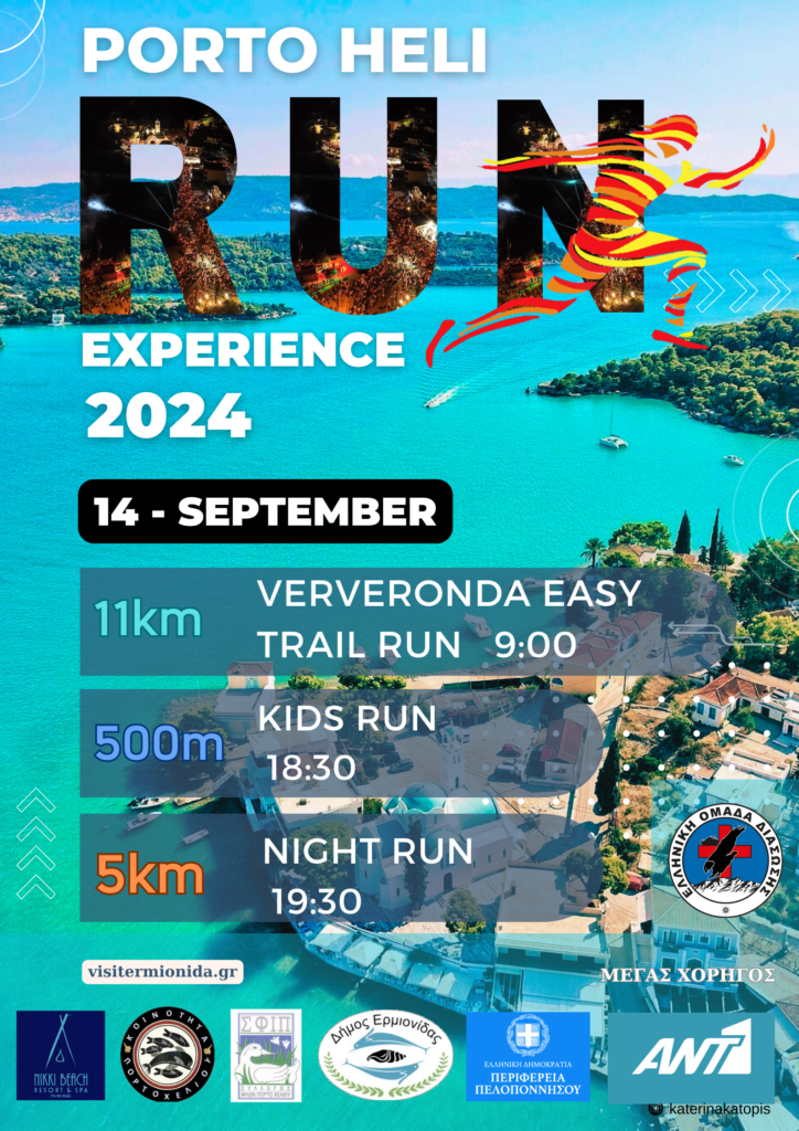 Ο Δήμους Ερμιονίδας σε συνεργασία με την Δημοτική Κοινότητα Πορτοχελίου του Δήμου Ερμιονίδας διοργανώνει για 6η χρονιά τη βραδινή εκδήλωση και μια πρωινή εκδήλωση που περιλαμβάνει τις διαδρομές 5 χλμ& 11 χλμ. στο Πορτοχέλι το Σάββατο 14 Σεπτεμβρίου 2024 με τον διακριτικό τίτλο:«PortoHeli Night Run & Ververonda EasyTrailRun».