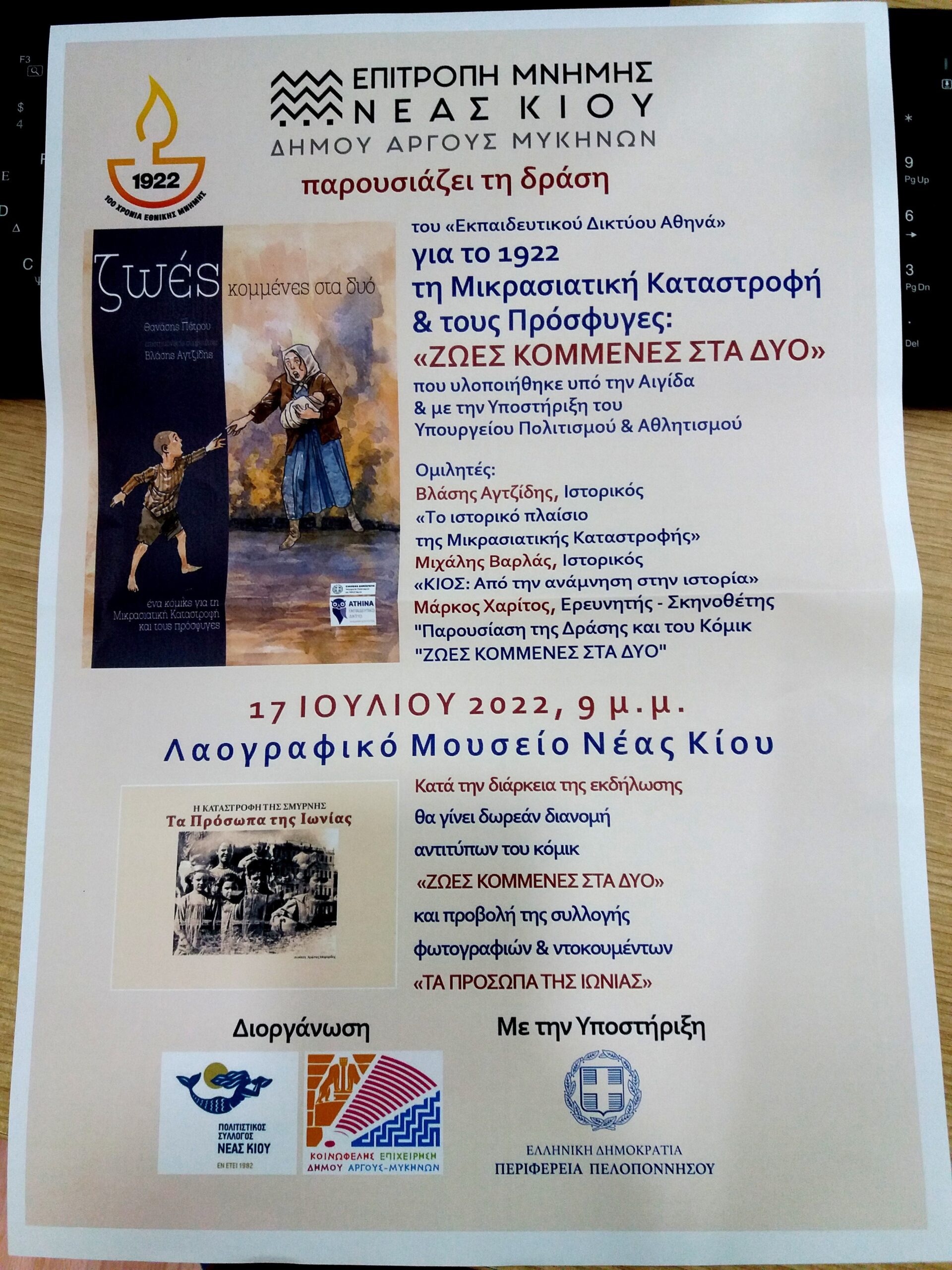 «Ζωές Κομμένες στα δύο», μια δράση του Εκπ/κού Δικτύου Αθηνά για το 1922 που υλοποιήθηκς υπό την αιγίδα & με την υποστήριξη του ΥΠΠΟΑ.