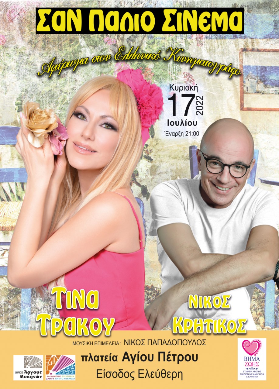 «Σαν παλιό σινεμά». Συναυλία – Αφιέρωμα στον ελληνικό κινηματογράφο με την Τίνα Τράκου. Μαζί της ο Νίκος Κρητικός. Μουσική επιμέλεια Νίκος Παπαδόπουλος.