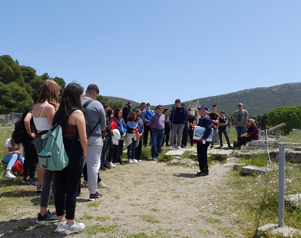 Ξενάγηση στους μαθητές του Γ.Ε.Λ. Λυγουριού στον αρχαιολογικό χώρο του Ασκληπιείου Επιδαύρου από τον καθηγητή κ. Β. Λαμπρινουδάκη
