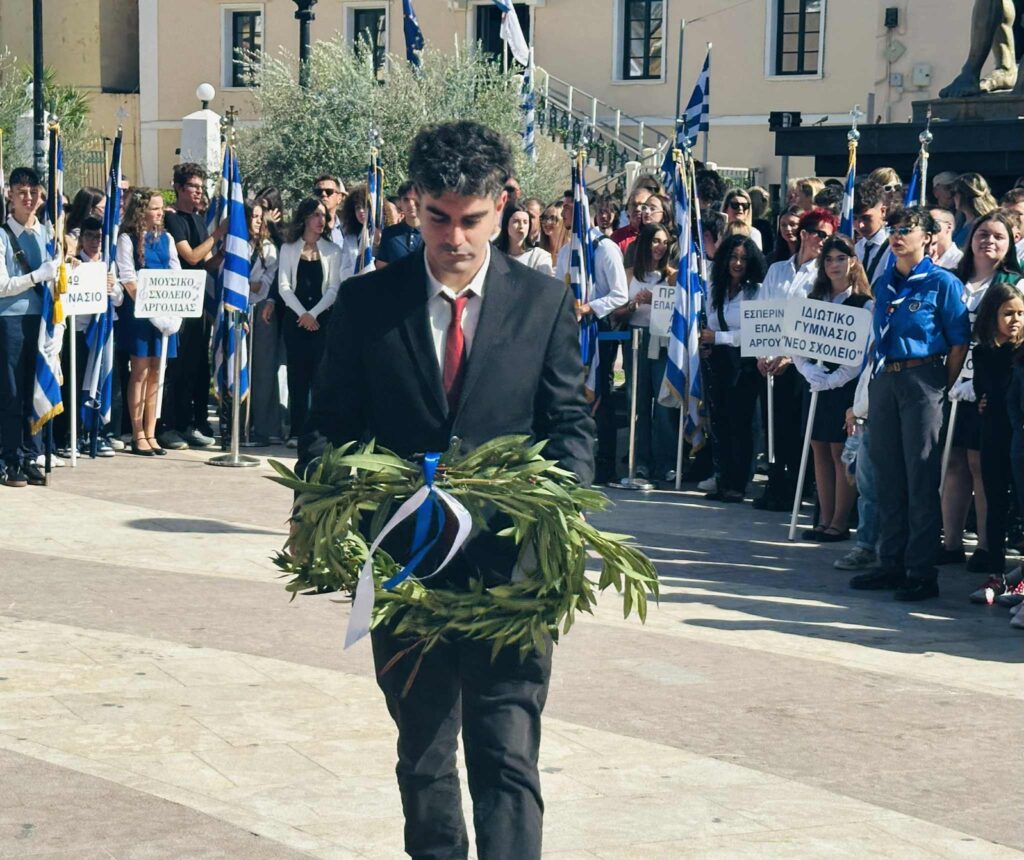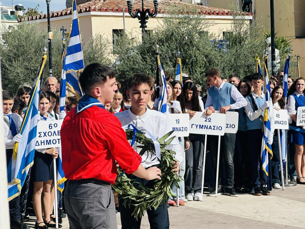 Μαθητές δίπλα στη σημαία και με το βλέμμα στραμμένο στο μέλλον έχοντας παρακαταθήκη την ιστορία μας, τίμησαν εκείνους που υπερασπίστηκαν τα ιδανικά της ελευθερίας, της δικαιοσύνης και της ειρήνης, παραδίδοντας σε όλους μας ένα διαχρονικό παράδειγμα θάρρους και αυταπάρνησης.