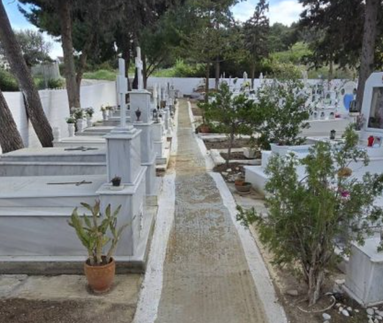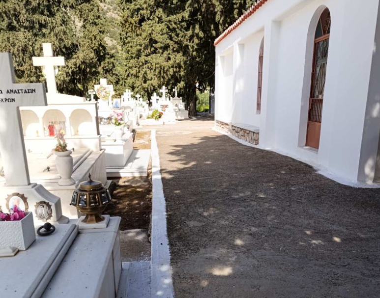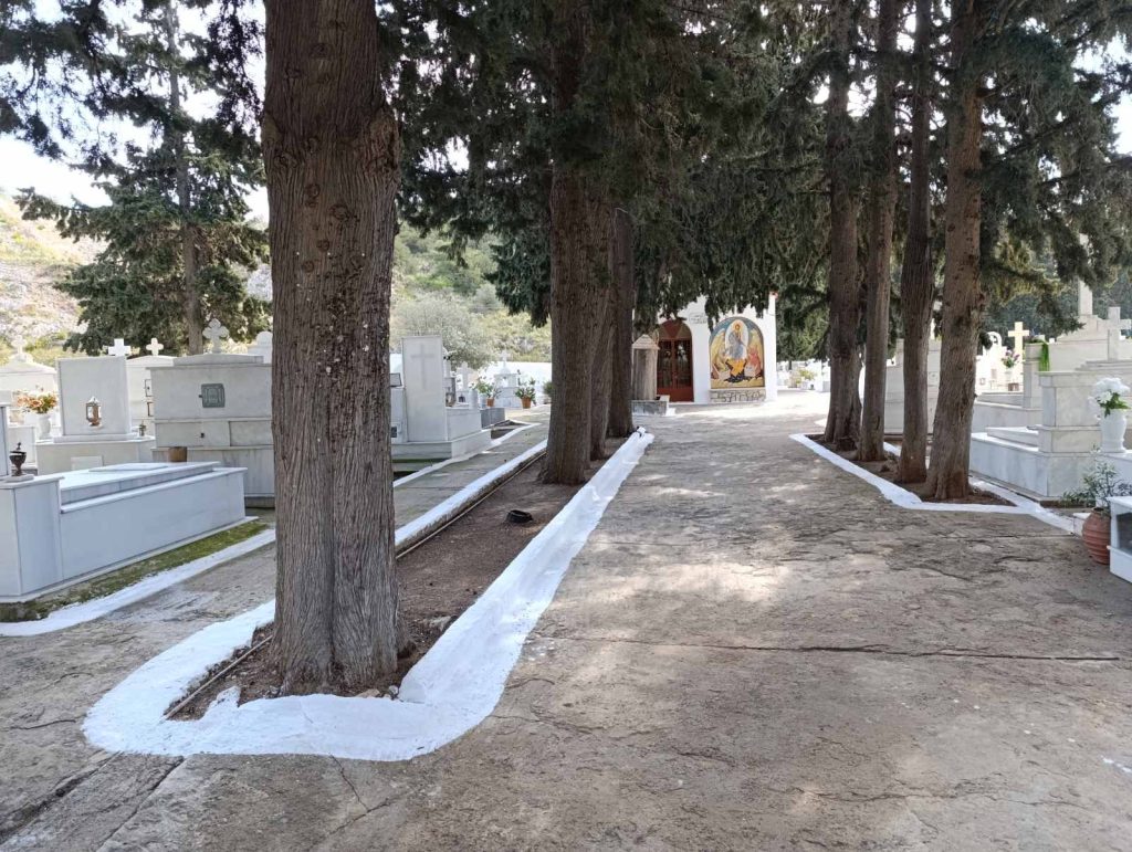 Ειδικότερα, έχουν γίνει εκτεταμένες εργασίες περιποίησης των φυτών, καθαρισμός από άχρηστα υλικά, ελαιοχρωματισμοί των μαντρών, αποψίλωση χόρτων, αποκομιδή απορριμμάτων, καθαρισμοί των διαδρόμων μεταξύ των μνημάτων κ.α.