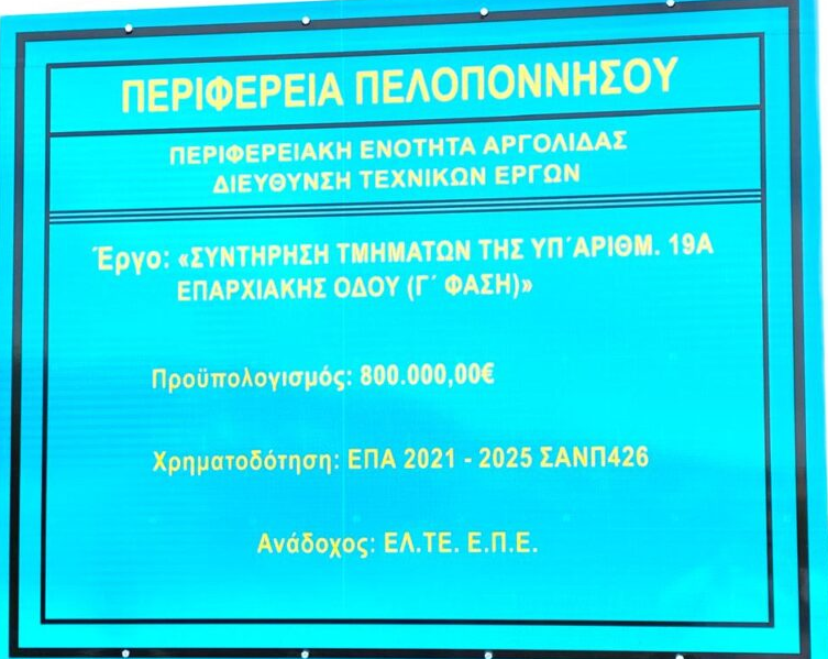 Η Περιφέρεια Πελοποννήσου ολοκλήρωσε τις εργασίες αποκατάστασης και διαγράμμισης στο οδικό τμήμα της υπ’ αριθμ. 19Α Επαρχιακής Οδού – Γ’ Φάση, γνωστό ως «Δρόμος των Αρχαιοτήτων», στην Περιφερειακή Ενότητα Αργολίδας, με συνολικό προϋπολογισμό 800.000 ευρώ.