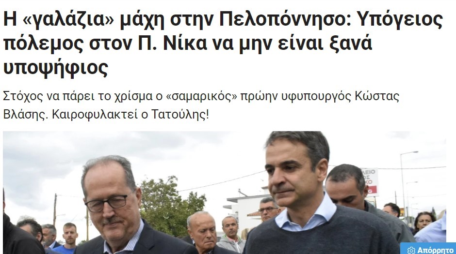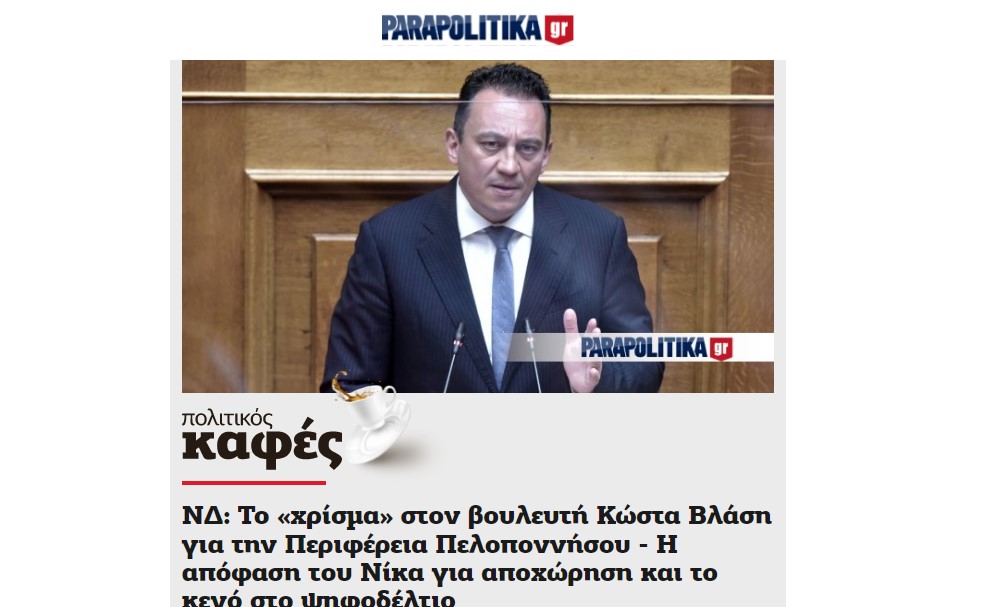 Ένα όργιο φημών βρίσκεται σε εξέλιξη το τελευταίο χρονικό διάστημα με επίκεντρο την πιθανή αλλαγή του Παναγιώτη Νίκα με τον Βουλευτή της Νέας Δημοκρατίας Κώστα Βλάση. Όλα άρχισαν όταν στην Αθηναϊκή εφημερίδα ΠΑΡΑΠΟΛΙΤΙΚΑ την οποία εκδίδει ο δημοσιογράφος Γιάννης Κουρτάκης στις 28 Δεκεμβρίου του 2022 Και ειδικότερα στην στήλη πολιτικός καφές με τίτλου υπήρξε δημοσίευμα στο οποίο αναφερόταν μεταξύ άλλων τα ακόλουθα « ΝΔ: Το «χρίσμα» στον βουλευτή Κώστα Βλάση για την Περιφέρεια Πελοποννήσου – Η απόφαση του Νίκα για αποχώρηση και το κενό στο ψηφοδέλτιο» με τον ακόλουθο σχολιασμό.